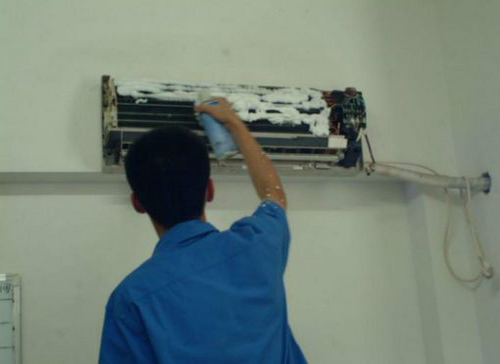 | 保定市空调维修师傅给保定市用户上门维修清洗空调。 |